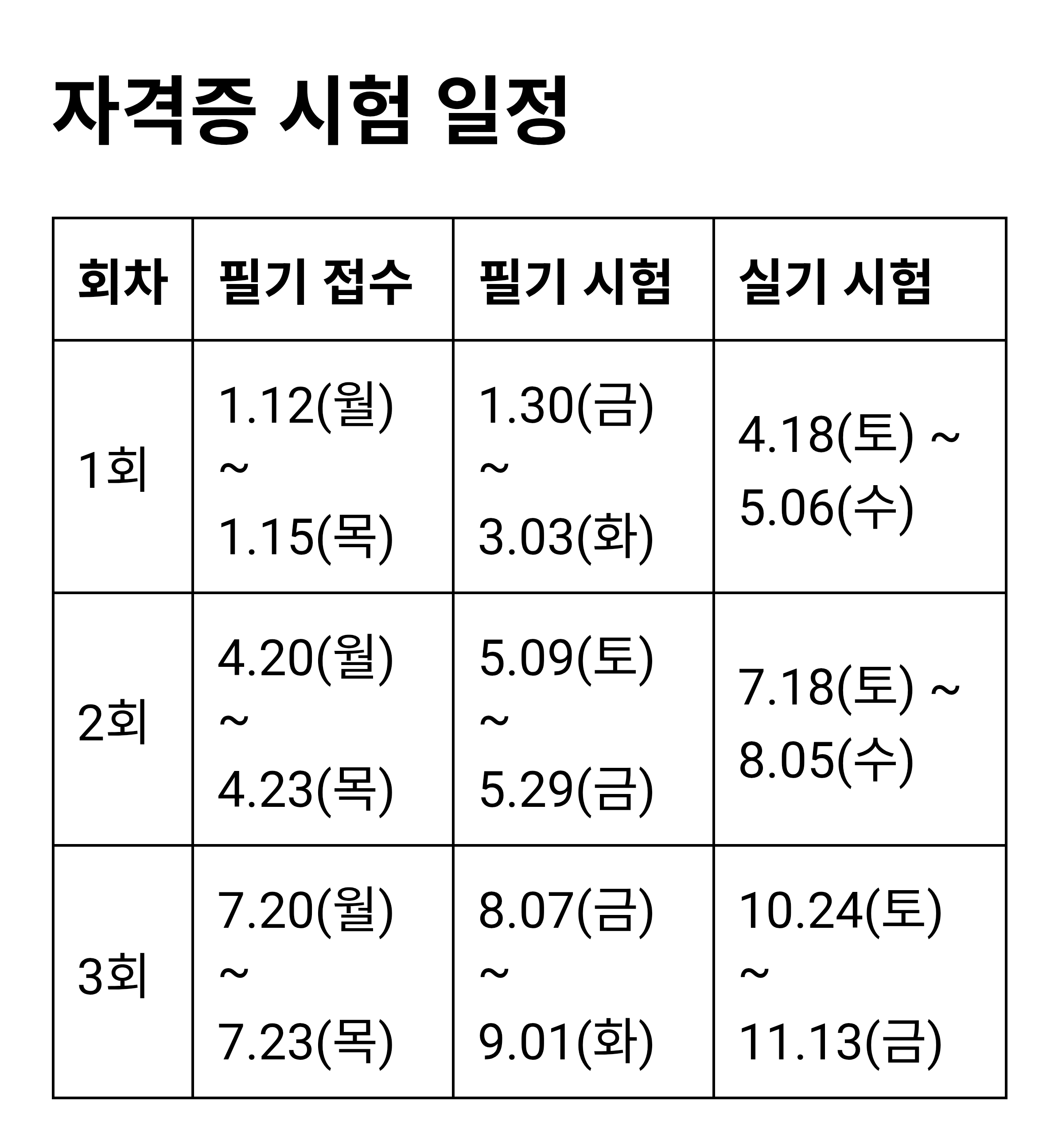 1회차 필기 접수는 1월 초 시작 → 연초 준비 필수