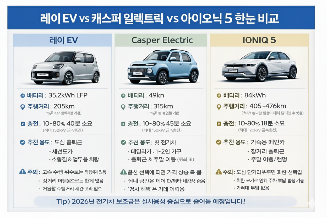 👉 레이 EV는 ‘도심 전용 전기차’로 보면 정확합니다.