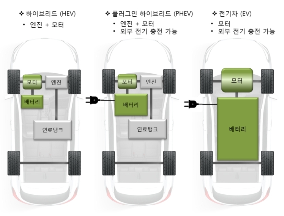 EV 전기차 / 하이브리드 / 내연기관 차량을