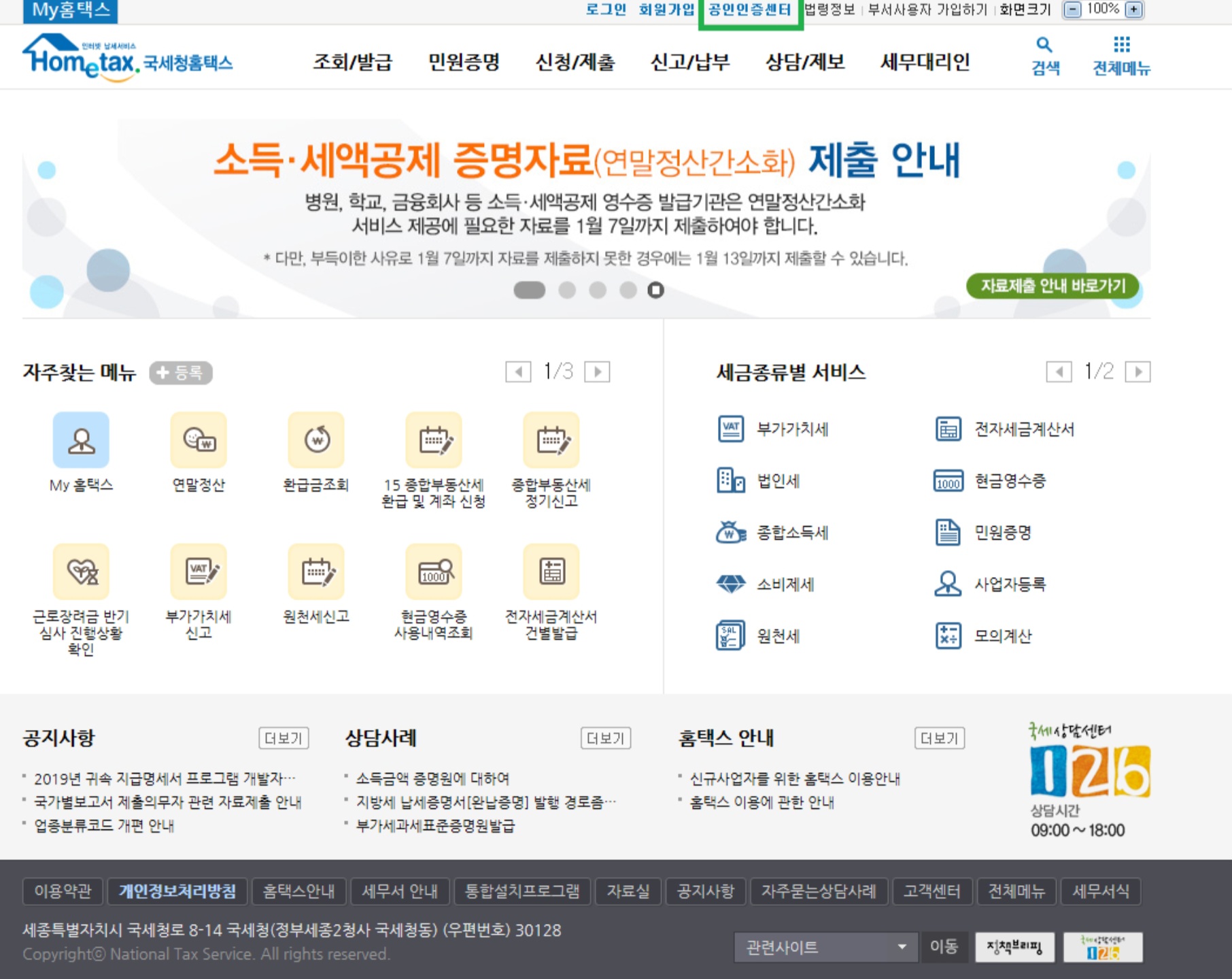 주소: 홈택스 > 연말정산 > 간소화 서비스